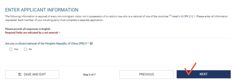 3. 중국인을 물어보는 질문에 아니요를 체크합니다.
