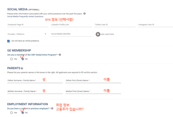 - 괌 내의 취업정보를 묻고 있는데 여행자니까 NO 체크 하시면 됩니다.