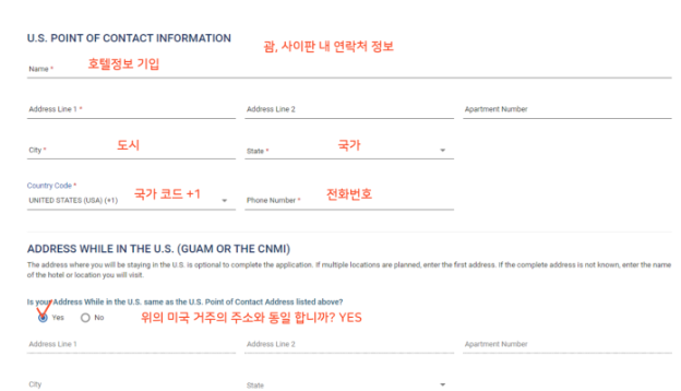 - 머무는 동안의 주소가 위의 작성한 내용과 동일 하다고 'YES' 를 체크 하시면 됩니다.