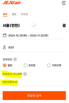 ※ 제주항공 프로모션 코드 & 신규회원 가입 혜택 중복 적용 가능 합니다.