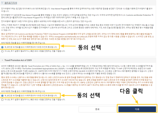 1)미국 전자여행허가제 사이트 접속(회원가입 및 로그인 불필요함)