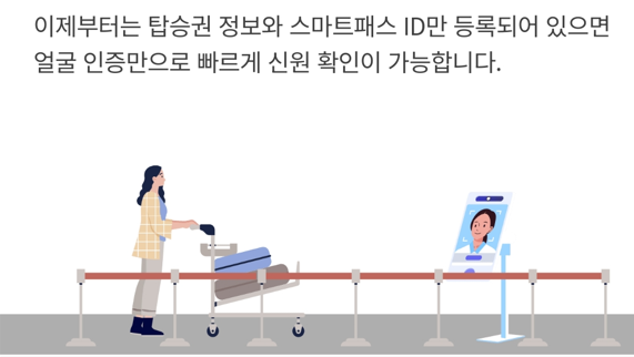 스마트패스는 첨단 안면인식 기술을 활용해 출국장 검색요원에게 여권이나 탑승권을 보여주지 않고도 본인확인절차를 빠르게 마칠 수 있는 서비스입니다. 해외여행을 위해 공항 도착부터 여러 번 여권과 탑승권을 꺼내고 제시하는 번거로움이 없어집니다. 스마트패스는 여권, 안면정보, 탑승권 을 사전 등록한 후 공항에서 출국장, 탑승게이트 등 출국 프로세스를 얼굴 인증만으로 신속히 통과할 수 있습니다.