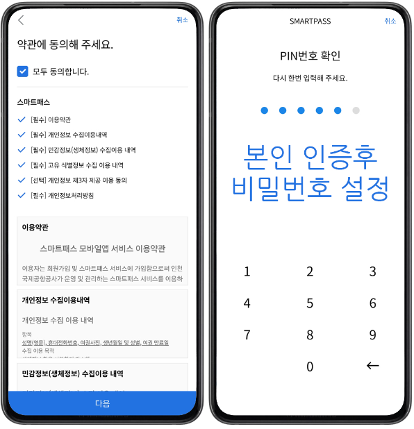 1) 스마트패스 앱 다운로드 하여 회원가입 및 본인인증, PIN번호 등록을 합니다.