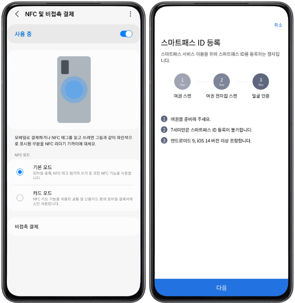 - 등록을 위해 핸드폰 설정에서 NFC기능(기본 모드)을 활성화 준비 합니다.