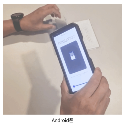 - 여권을 접은 후 핸드폰을 여권위에 올려주시고 "전자여권 인식" 버튼을 누르면 핸드폰 NFC칩이 여권 전자 칩을 자동으로 스캔합니다.
