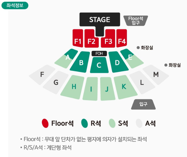 - 좌석 : Floor석, R석, S석, A석