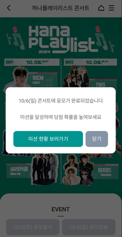 - 예매: 하나원큐 앱에서 이벤트 응모