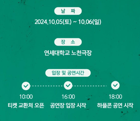 - 기간 : 2024.10.05(토) ~ 10.06(일), 18시 부터(3시간 30분 공연)
