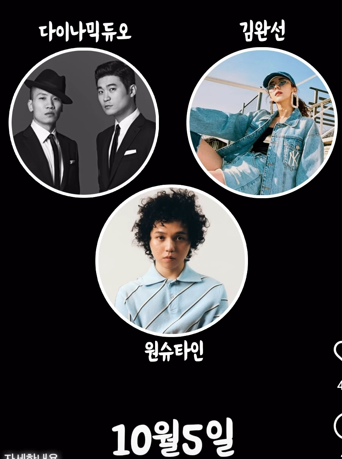 - 10/5(토) : 다이나믹듀오, 원슈타인, 김완선